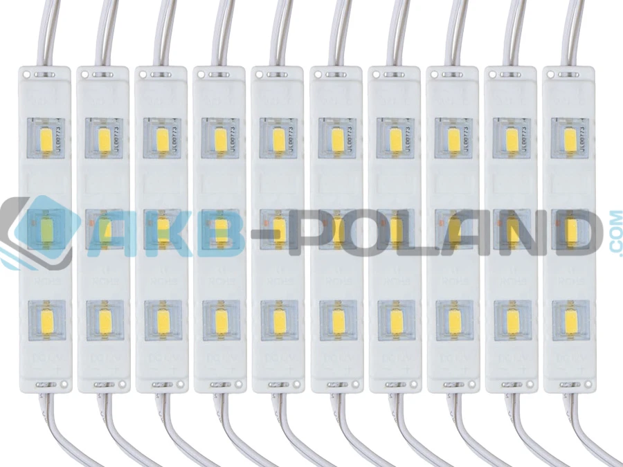 ✨⭕✅ Moduł LED 3 diodowy oparty na najmocniejszych diodach SMD5730 jest produktem wysokiej jakości optymalnym do oświetlenia: reklam, banerów, liter świetlnych, kasetonów reklamowych, ekspozycji sklepowych, mebli, półek, schodów, ogrodów, samochodów itd.