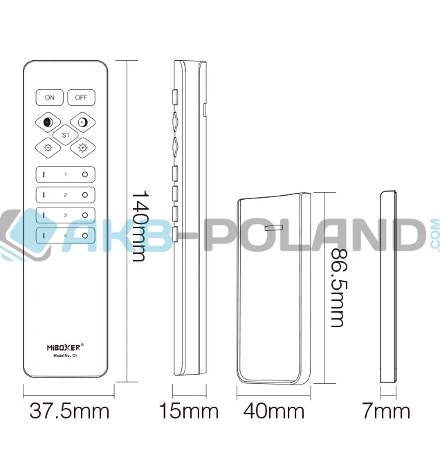 - Wymiary pilota: 140 x 37,5 x 15mm