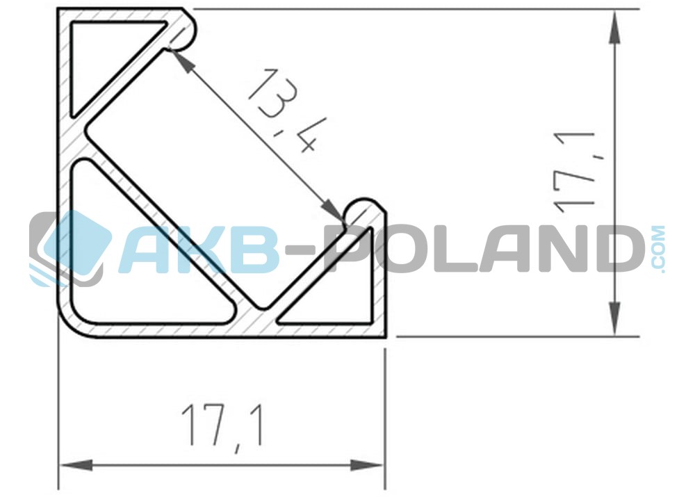 Profil kątowy jest przeznaczony głównie do montażu w narożnikach mebli. Rozprowadza światło pod kątem 45° dzięki czemu nie razi w oczy osób znajdujących się naprzeciwko. Może być zastosowany blisko frontów szafek, kierując światło do środka.